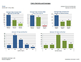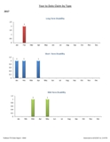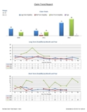 - Main sheet: Column chart of – Average # days between First day off and RTW date, Average # days between claim start & first day off, Average # days between first day off and medical review date, Average LTD & STD days lost by year, Average # days lost by Reason, Claims started and RTW, Claims started by type, % of claims approved vs. denied, claims currently off vs RTW, % of claims RTW, % of claims returned to modified duties, % of claims currently on modified duties, claims started by month and year, claim returned by month and year.