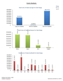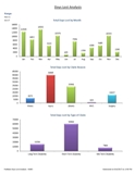 - Main sheet: Pie chart of total costs of claims by type. Pie chart of total costs of claims for reason. Bar chart of total detailed costs for claims occurring in date range. Chart of total costs of claims by month.