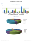 - Main sheet: Chart of medical profile totals by type of claim. Pie charts of each claim type with percentage of medical profiles.