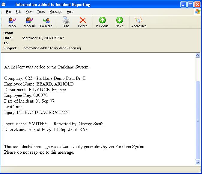Head Office is automatically notified by email when an incident has