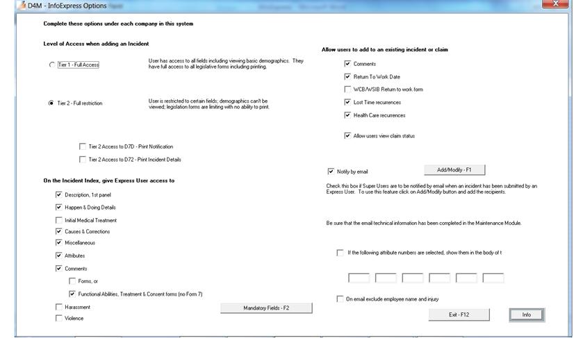 Module and under Options, click on InfoExpress Options. On this page indicate the options that