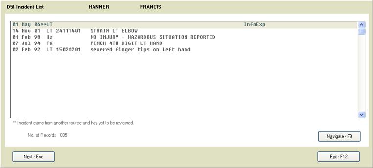had been entered though InfoExpress. To the right of the incident date there will