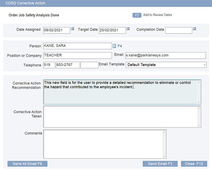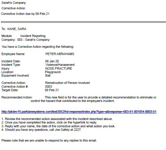 We have made it easy to assign Corrective Action Recommendations using software generated emails. In addition, the email recipients can simply respond via web form which will populate their response in the Corrective Action Taken field in Parklane.