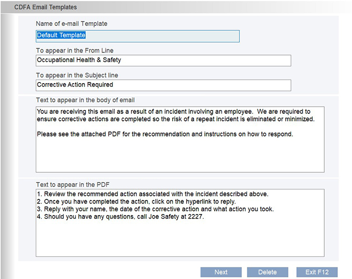 - Prompt the system to send them an email. The software will attach a PDF that includes the pertinent incident information and the corrective action recommendation.