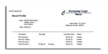 Recall New Report: B2K Profile /w Logo Parklane clients have used the B26 Profile to provide employees with a list of their immunizations and tests recorded in Recall. The B2K Profile is similar to B26 but is more conducive for distribution to employees. It is located on the employee’s Recall Sidebar and can be activated under Security.
