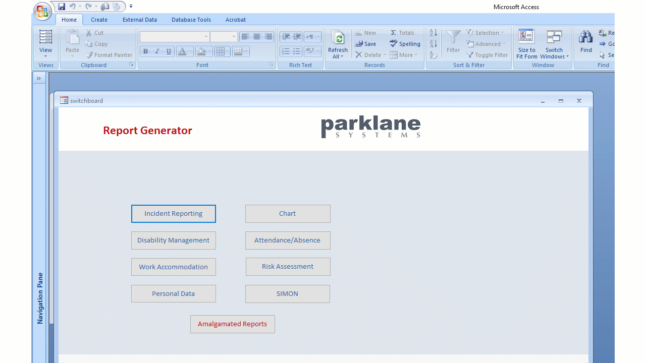 Sample (not included) demonstrates in Microsoft Access; however, other report writers, such as Crystal Reports, can be used.